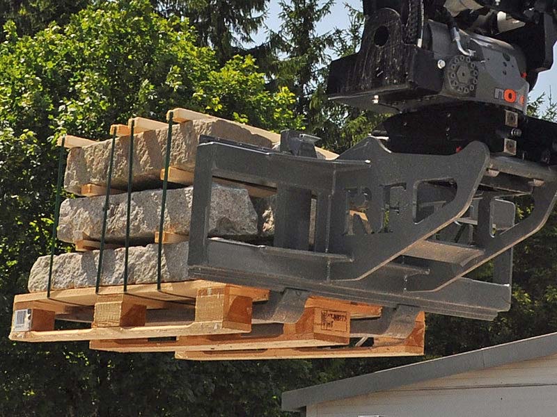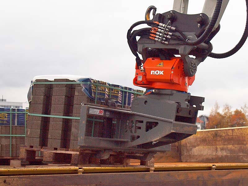 de matériaux palettisés ou non palettisés sont faciles avec les fourches à palettes GAF. Transformez votre pelle en chariot élévateur à fourche - idéal en combinaison avec un NOX Tiltrotator.
