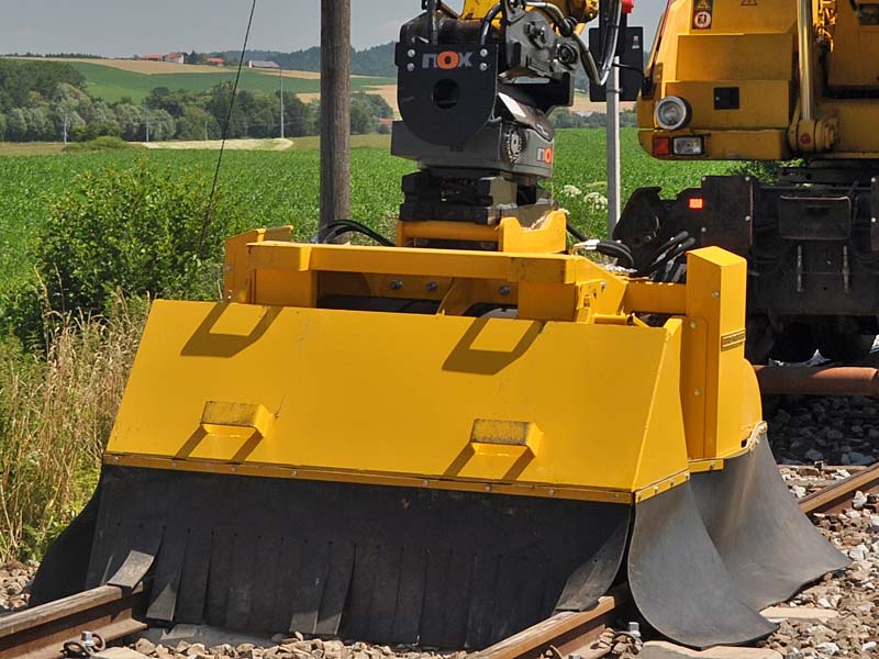 … the perfect excavator attachment for North America for levelling and distributing ballast on existing railtracks. Cleaning the track after filling it up with ballast has never been easier without damaging rails or sleepers. Ideal is the combination with a tiltrotator for more maneuverability. The tool is also available for loaders.